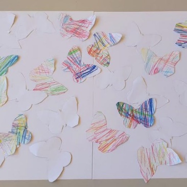 Step 3: Cut out 10 identical butterflied in bright coloured paper.