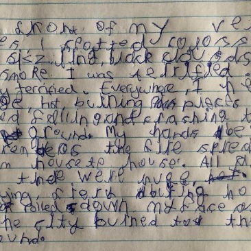 Wow! Eva- this is an absolutely fantastic piece of first person description. I think you have really described what Toby could see, smell and hear and how he felt!