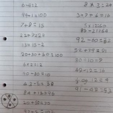 Well done Sai. I can see that you have been working hard on your arithmetic skills while learning from home.