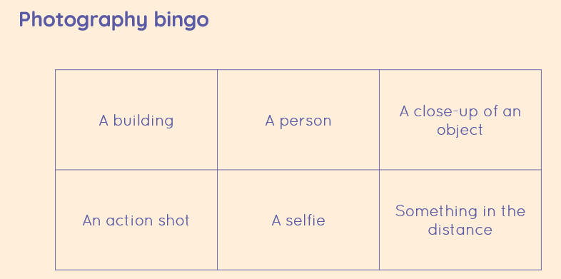 Science and Computing: This week we are due to start a new digital photography unit. Start by viewing the attached slides. Now, with the support of an adult, can you take a photograph which meets each of these challenges?